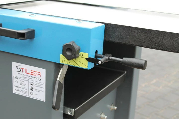 На передній частині верстата розташований важіль для регулювання висоти стругального столу. Завдяки йому можна легко, швидко і точно встановити глибину стругання.