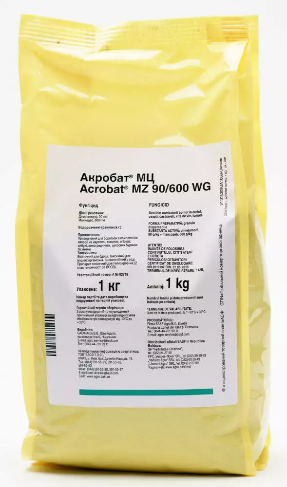 Акробат безпечний для рослин, мікроорганізмів і хробаків, які знаходяться в грунті. Крім того, він сумісний з більшістю інших контактних препаратів, що робить його зручним і універсальним засобом захисту від грибкових хвороб.