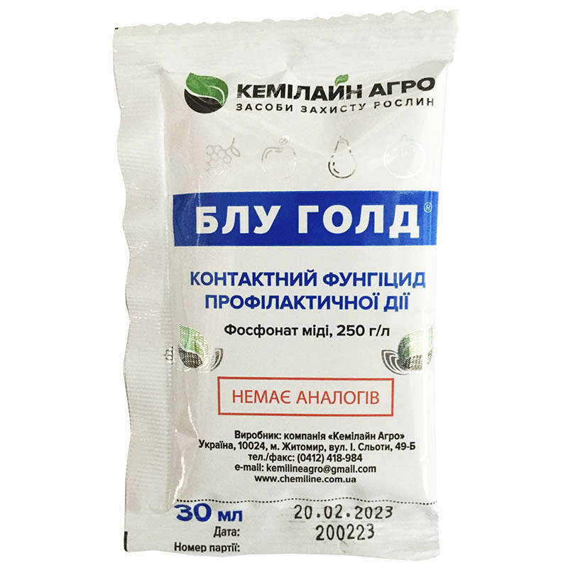 Блу Голд - контактний фунгіцид для захисту овочевих та плодово-ягідних культур від грибкових та бактеріальних захворювань.