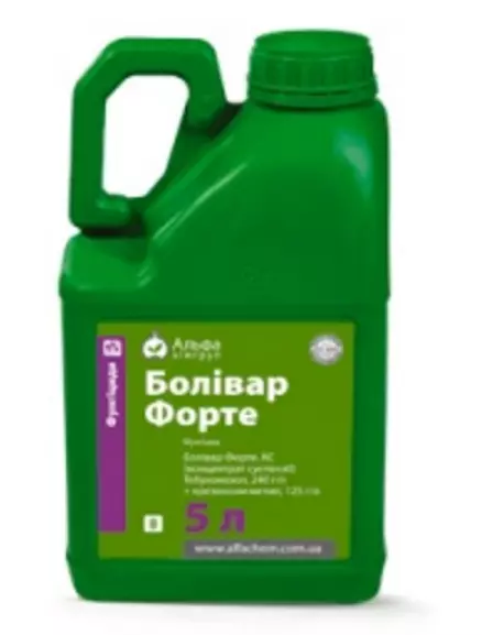 Фунгицид Боливар Форте от производителя АльфаХимгрупп с действующим веществом Тебуконазол, 240 г / л + крезоксим-метил, 125 г / л для пшеницы, подсолнечника, сои, кукурузы, рапса, яблони, виноградника можете купить, заказав на нашем сайте по выгодной цене с доставкой в любую точку Украины.