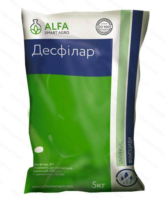 Фунгіцид Десфілар вітчизняної компанії АльфаСмартАгро - двокомпонентний препарат, що характеризується інтенсивним системно-контактним впливом. Використовується для придушення розмноження, знищення різних грибкових суперечок на картопляних, томатних, цибулинних та виноградних полях. До складу входить манкоцеб та цимоксаніл. Випускається як порошку, який перед застосуванням зволожується рідиною. Фасується поліетиленові мішки різних обсягів.