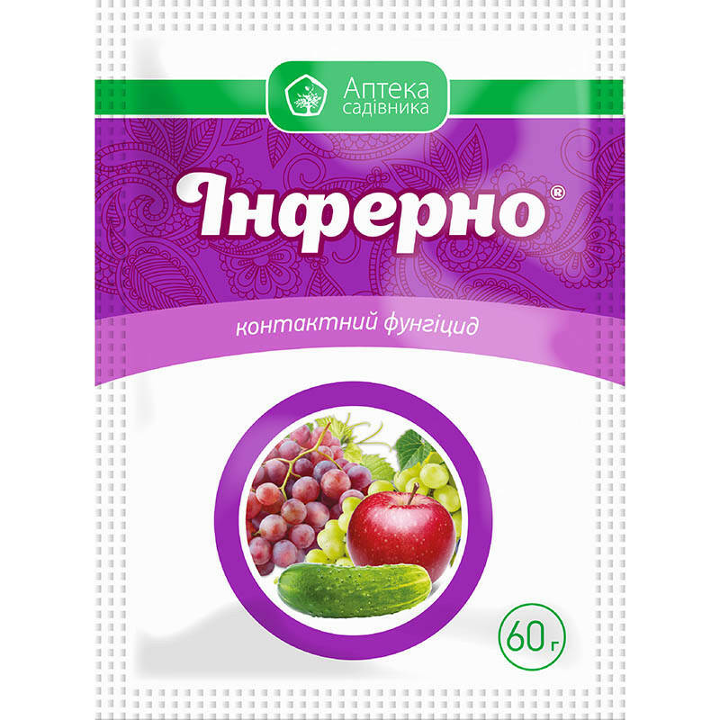 Інферно - контактний фунгіцид для захисту виноградників і плодових насаджень від борошнистої роси із додатковим акарицидним ефектом.