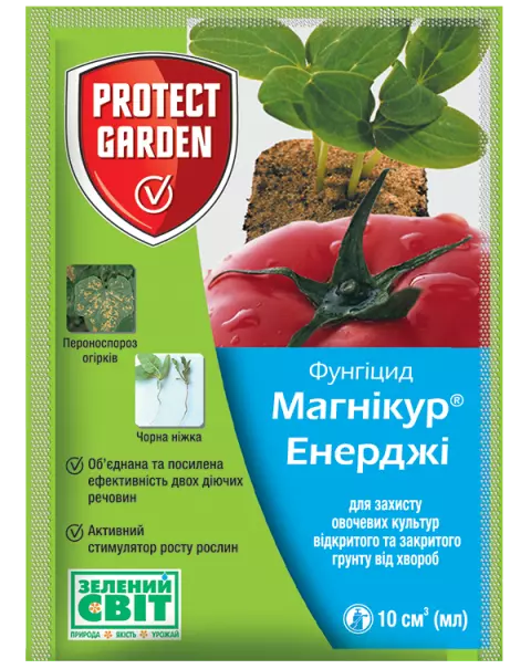 Фунгіцид Магнікур Енерджі – це ефективний засіб проти захворювань рослин, що містить два активні компоненти. Призначений для захисту посадок різних овочевих культур, може використовуватися як у відкритому, так і в закритому ґрунті, для обробки розсади та дорослих рослин. Магнікур Енерджі має посилений фунгіцидний ефект, активізує розвиток всіх частин рослин.