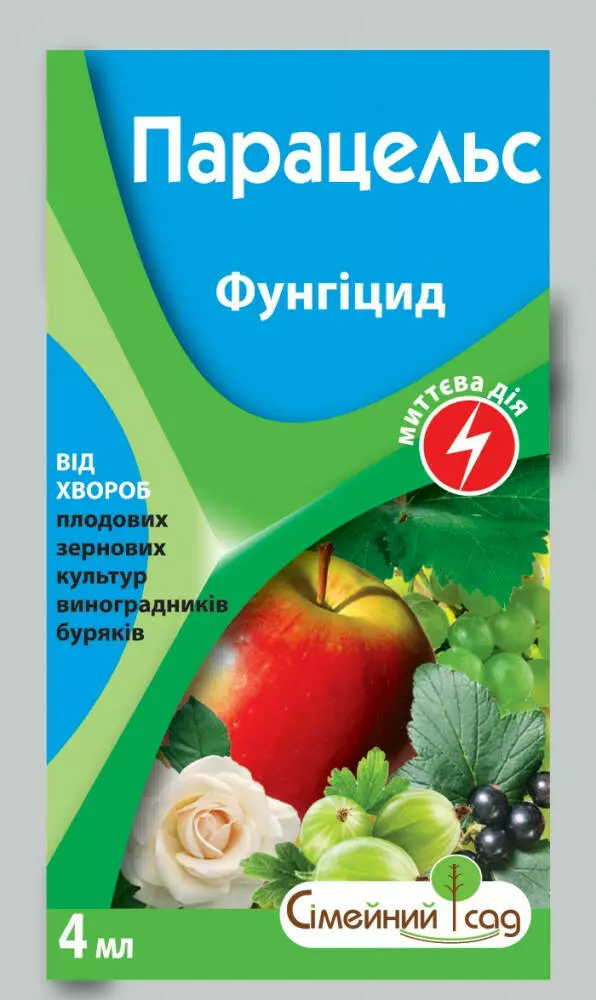 Парацельс - системний фунгіцид проти комплексу захворювань в період вегетації зернових культур, цукрових буряків, виноградників, яблунь.