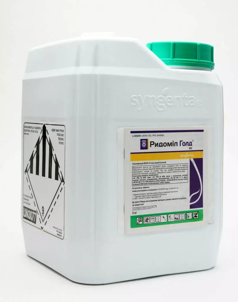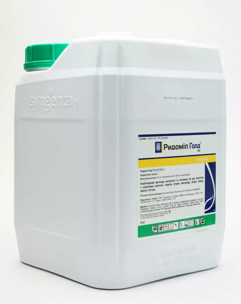 Ридоміл Голд - комбінований фунгіцид контактної та системної дії для боротьби з хворобами картоплі, томатів, огірків, винограду, цибулі, ріпаку, хмелю.