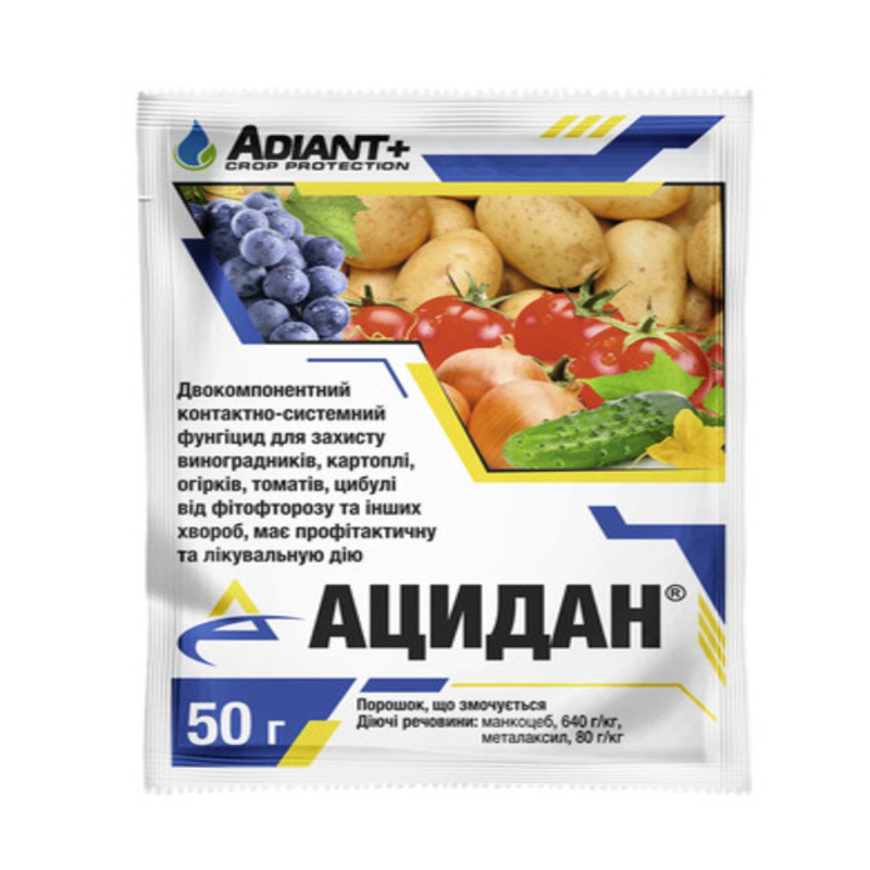 Фунгіцид системного та контактного впливу Ацидан, 50 г — від фітофтрозу, перопорозу, альтернаріозу, мілдою