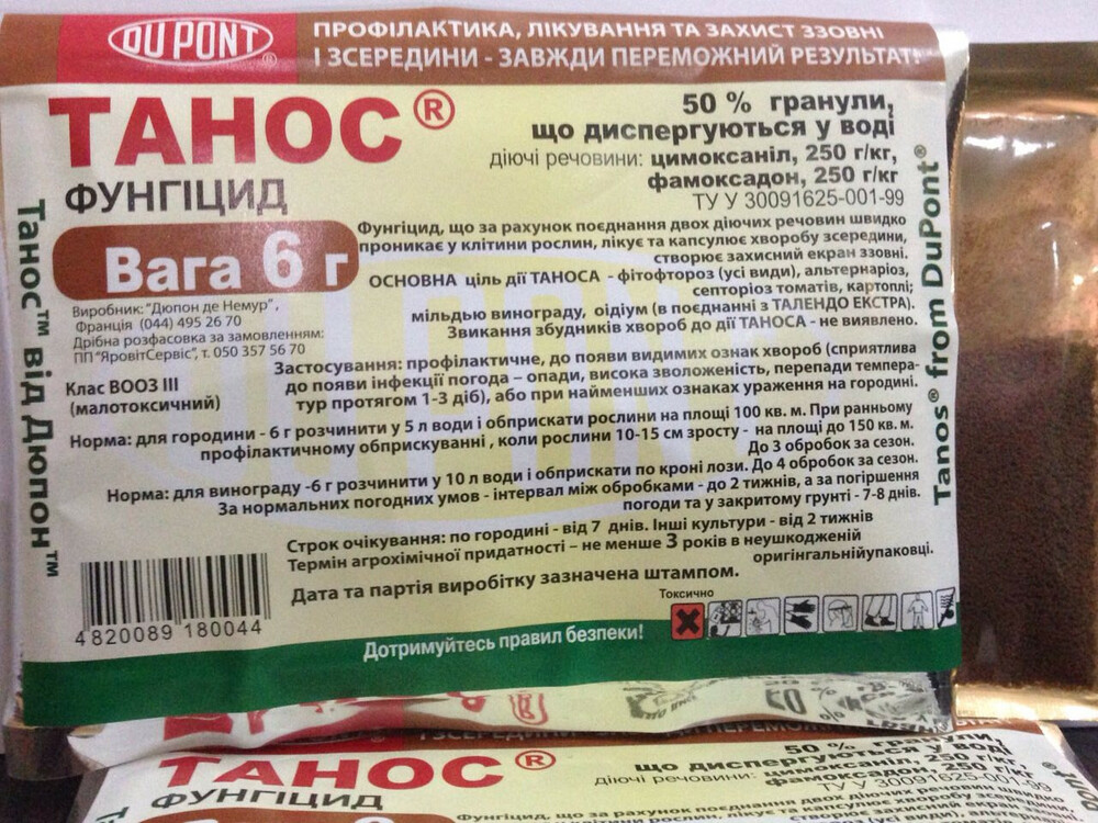 Фунгіцид Танос (6 г) — профілактика та захист від захворювань картоплі, овочів, винограду, соняшнику