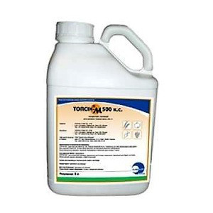 Фунгіцид Топсин-М — системний препарат, призначений для захисту культурних рослин від грибкових патогенів. Активна речовина — тіофанат-метил. Фунгіцид пришвидшує збудника хвороби, блокуючи розвиток міцелію та спороутворення. Захисна дія триває 3-6 тижнів.