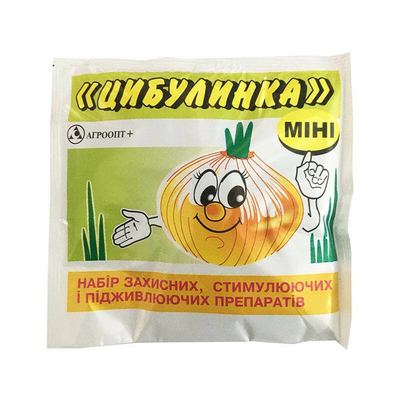 Цибулинка міні - - набір захисних, стимулюючих і поживних елементів для цибулі. Застосовується для обробки від пероноспорозу, альтернаріозу та гнилей. А також для позакореневого та кореневого підживлення мікро- і макроелементами, стимулювання росту й розвитку рослин. Ви робите одну обробку - а набір Цибулинка робить відразу три - підгодівля, регулювання росту і розвитку, обробка від грибкових захворювань.