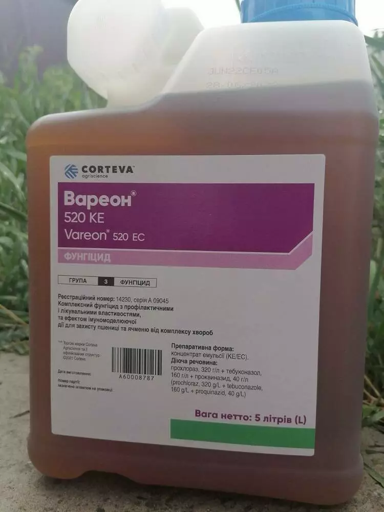 Вареон 520 к.э. ― високосективний трикомпонентний фунгіцид з ефектом імуномодулюючої дії для професійних програм захисту зернових культур від захворювань стебла та колоса, безпечний для використання на всіх сортах зернових колосових культур.