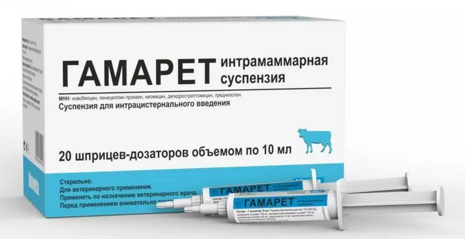 Гамарет – суспензія для лікування маститів бактеріальної етіології у корів у період лактації.