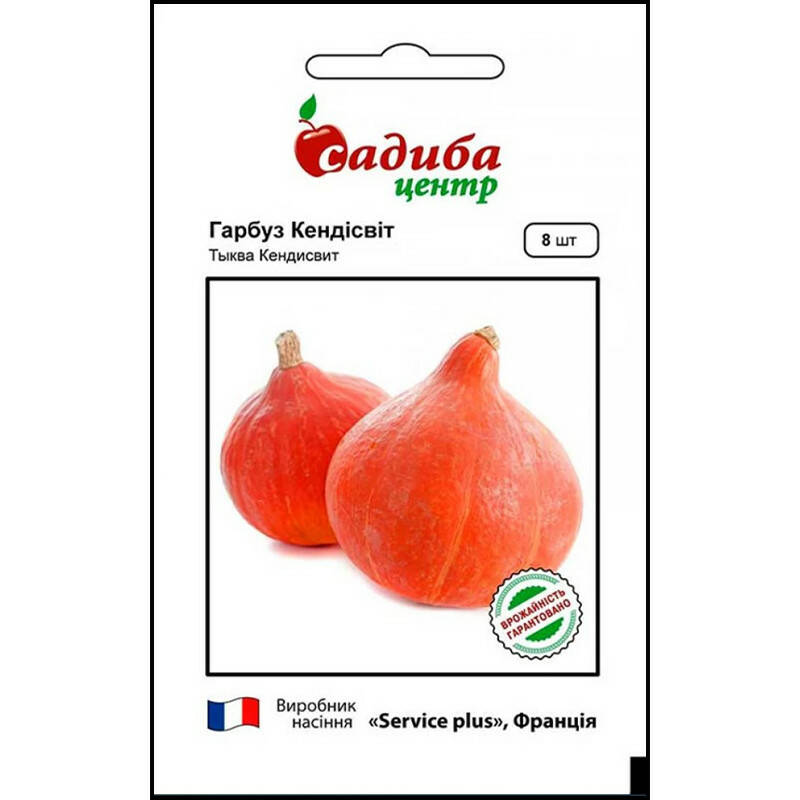 Гарбуз Кендісвіт - це середньостиглий сорт (106-115 днів). Рослина довгоплетиста, на кожній формується по 5 - 6 злегка приплюснутих плодів, массою по 1,5 - 2 кг. Шкірка гладка, помаранчево-червоного кольору із світлими смугами. М'якоть щільна, не волокниста, ароматна, насиченого помаранчевого кольору. Завдяки невеликому розміру плодів та надзвичайним смаковим якостям їх часто використовують, як горщик для запікання страв. Придатний для не тривалого зберігання до 8 місяців.