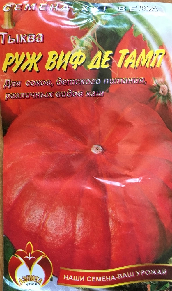 Середньостиглий, високоврожайний сорт гарбуза з високим вмістом каротину.  Плоди червоно-оранжевого кольору, сегментовані. М’якуш оранжевий, щільний, з прекрасними смаковими якостями. Середня маса плоду 15-20 кг. Сорт стійкий до хвороб.Використовується для приготування соків та пюре. Лежкість плодів дуже висока.