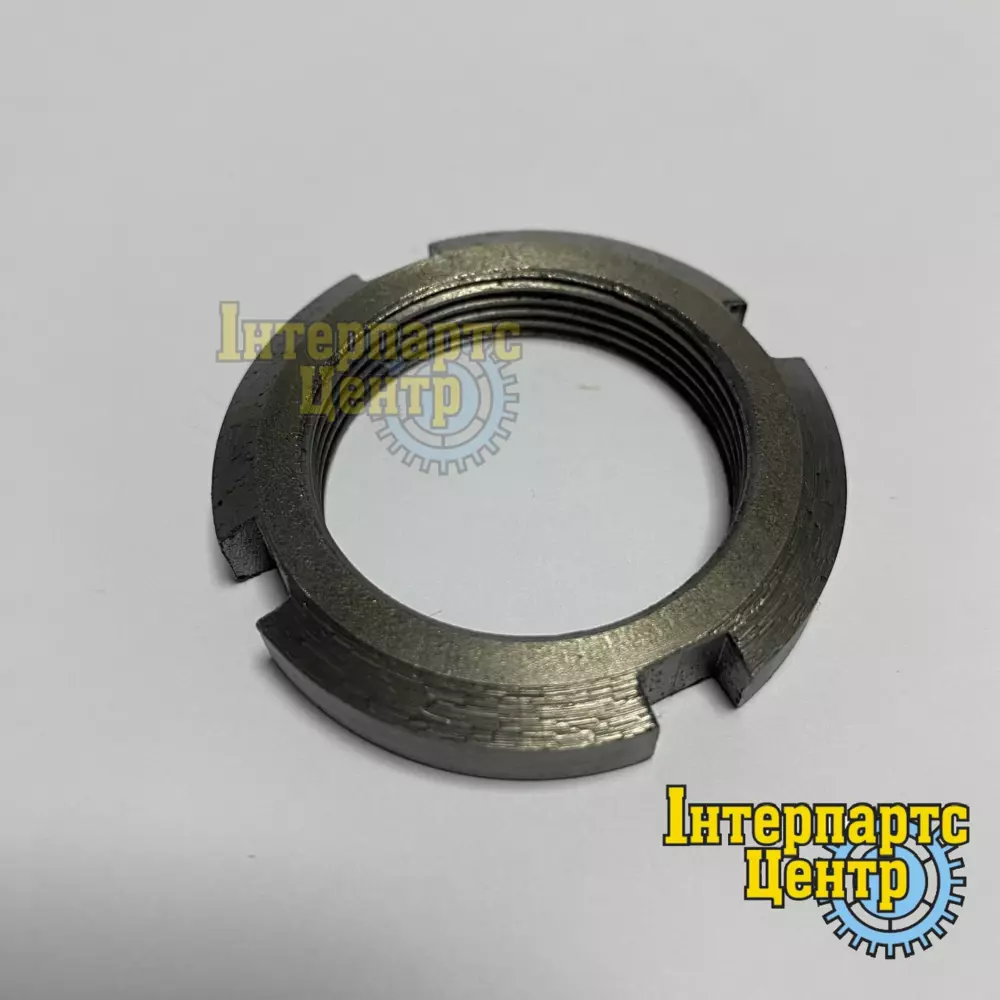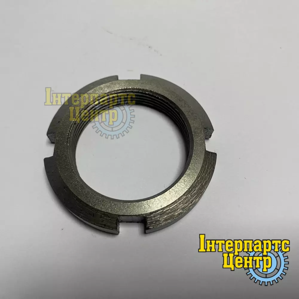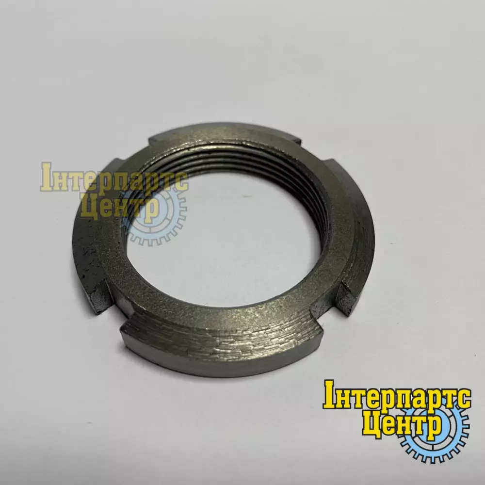 Гайка шліцева молотарки комбайнів Claas (Commandor, Dominator, Mega, Medion, Lexion, Jaguar). Розміри в мм: Зовнішній діаметр – 50 Різьблення – M35 . Номер за каталогом: 631694.0, 6316940, 000631694, 000631694.0, 0006316940 631694. Аналог.