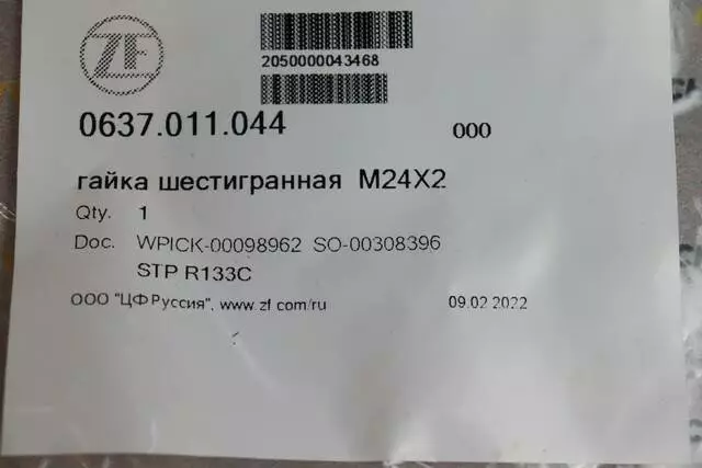 Гайка шестигранная ZF 0637.011.044