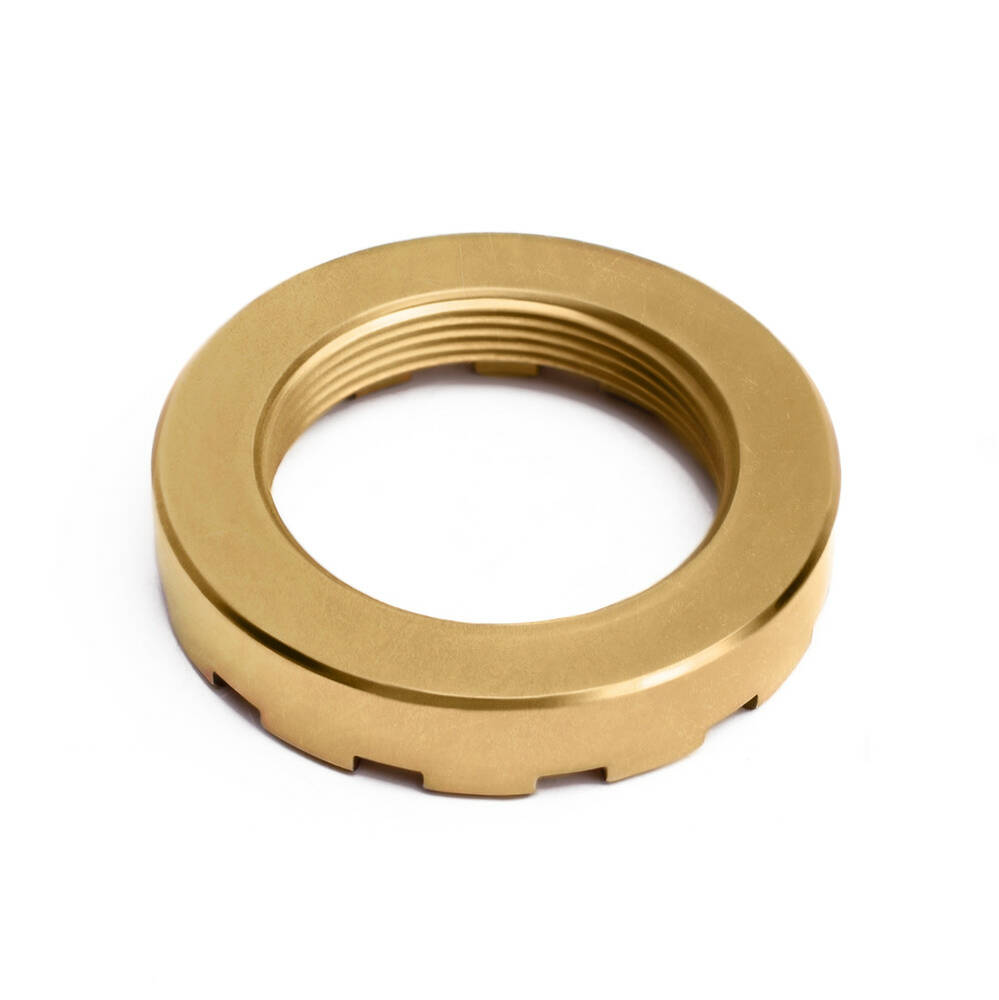 Гайка шліцьова Claas 500891 (0005008910) – це високоміцний стопорний елемент з точною метричною різьбою M45x1.5. Вона призначена для надійної фіксації підшипників, шківів, ступиць та інших компонентів на валах, що зазнають високих динамічних та вібраційних навантажень. Шліци (пази) на гайці служать для її контровки (наприклад, стопорною шайбою або шплінтом), що повністю виключає ризик самовідкручування.