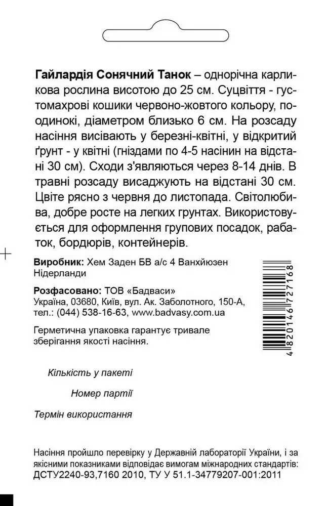 Гайлардія Сонячний танок, суміш, 0,2 г, Садиба Центр