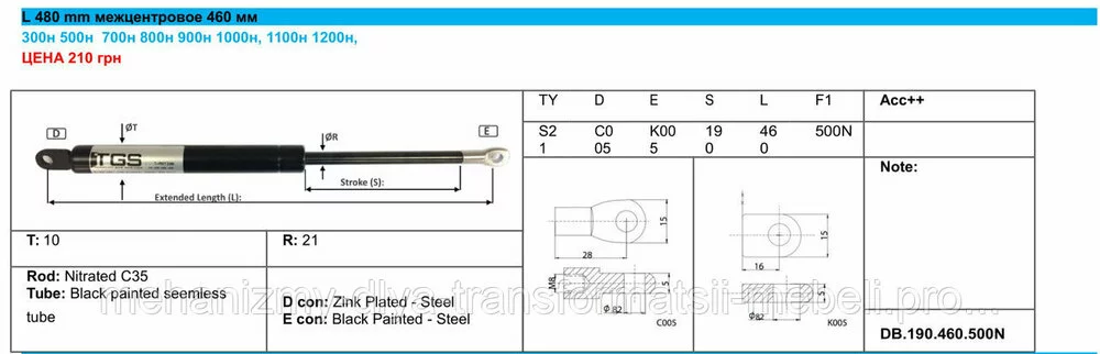 Газовый амортизатор, газлифт L 480\460  Турция TGS - TUNATEK