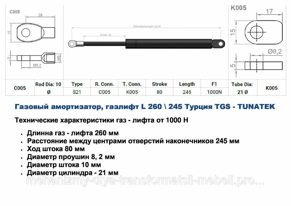 Газовый амортизатор, газлифт L 280\245 mm  Турция TGS - TUNATEK