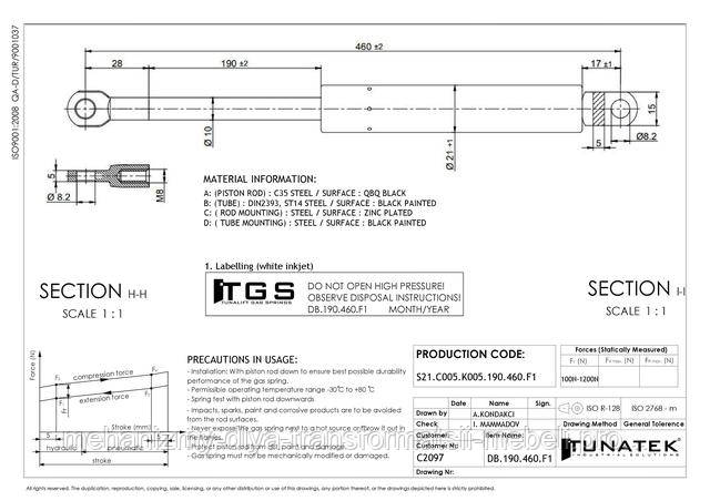 Турецкие газовые амортизаторы TGS разработаны по высоким качествам стандартов, используються экологически чистые материалы. Товар сертифицирован в соответствии с DIN ISO 9001:2008.