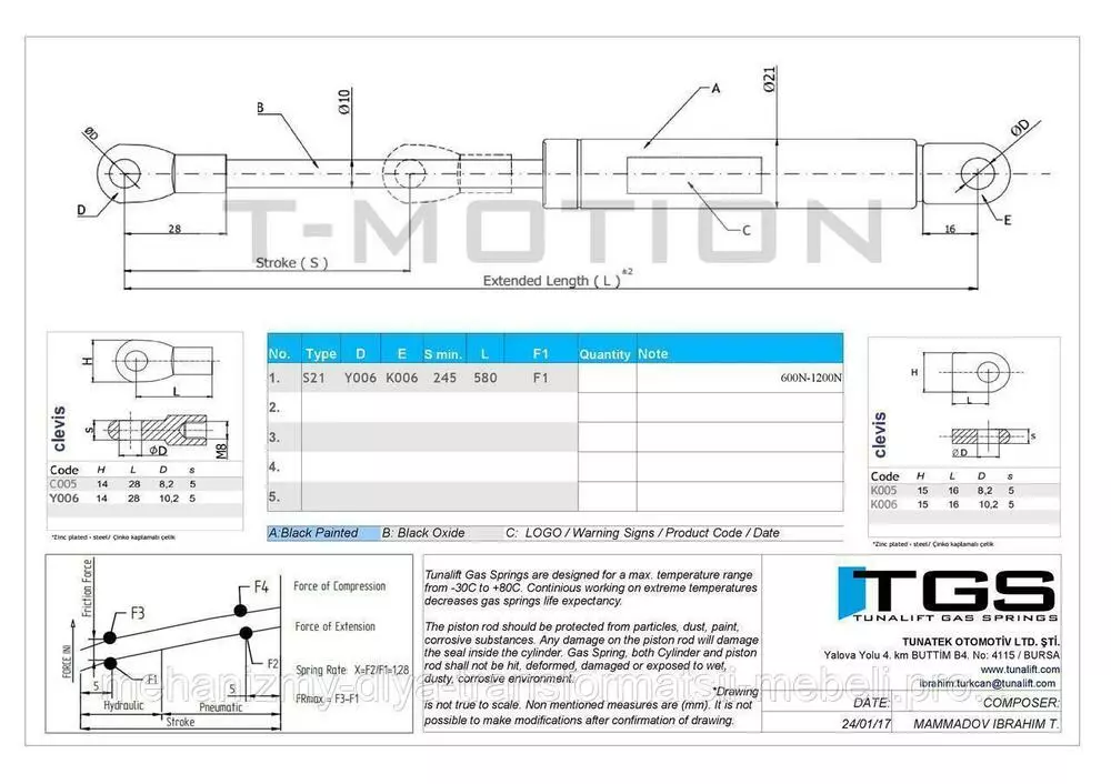 Турецкие газовые амортизаторы TGS разработаны по высоким качествам стандартов, используються экологически чистые материалы.  Товар сертифицирован в соответствии с DIN ISO 9001:2008.