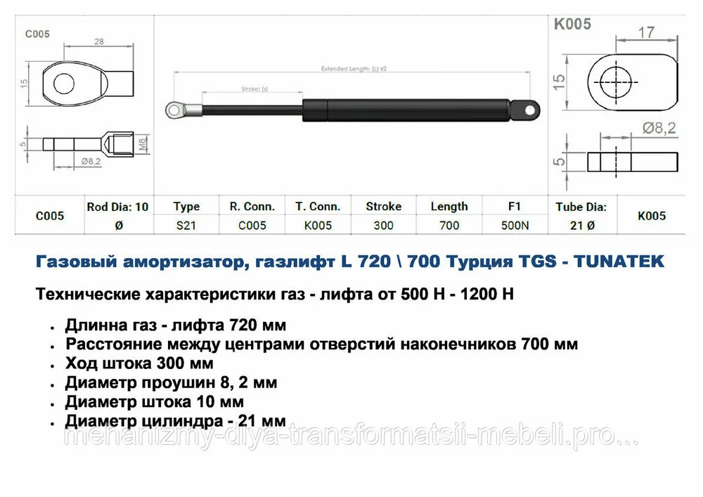 Газовый амортизатор, газлифт L 720\700  Турция TGS - TUNATEK