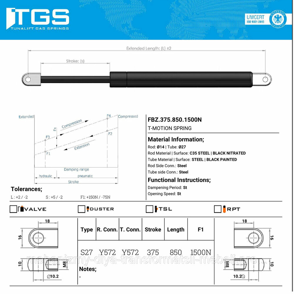 Газовый амортизатор, газлифт L 850 \ 835 Турция TGS - TUNATEK