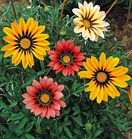 Газанія Сонячне Сяйво - це однорічна трав`яниста рослина, висотою до 30 см. Квітки великі, 7-10 см в діаметрі, зібрані в суцвіття-кошики жовтого, помаранчевого, червоного кольорів. Цвіте довго, з середини літа до холодів. Насіння у відкритий грунт сіють у квітні, на розсаду - у березні в ящики, теплі парники. Розсаду у відкритий грунт висаджують в травні. Всxoди з`являютьcя чepeз 5 - 14 днів. Віддає перевагу легким, поживним грунту з помірним зволоженням. Використовують для вирощування на рабатках, бордюрах, кам`янистих гірках.