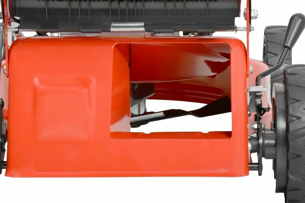 Корпус косарки виготовлений із сталевого листа з порошковим покриттям, завдяки чому він стійкий до гальки і не ржавіє