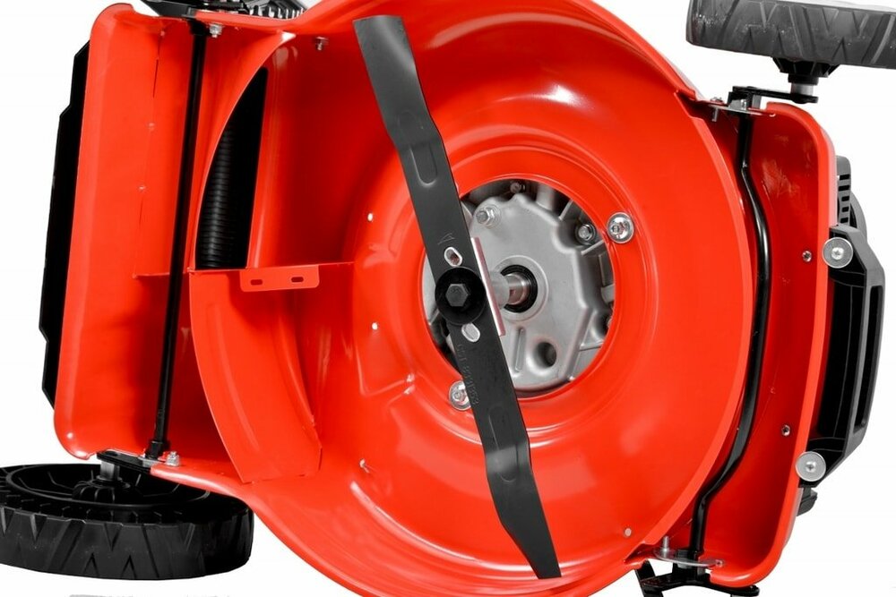 Косарка має великий травозбірник ємністю 65 літрів і може легко пересуватися по газону за допомогою шарікоподшипникових коліс. Ще один плюс - центральне регулювання висоти зрізу. При необхідності ви можете встановити висоту зрізу за допомогою одного важеля у восьми рівнях, від 25 до 70 мм.
