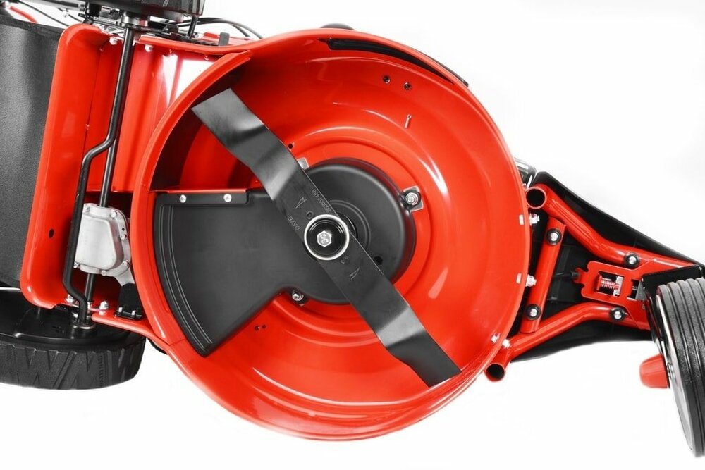 360 ° носове колесо - носове колесо робить косарку надзвичайно маневреною і дозволяє легко косити навколо кущів і дерев, і особливо практично при використанні на звивистих газонах.