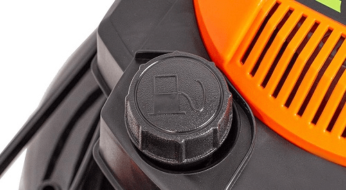 Корпус газонокосарки виготовлений із сталі, що надає їй стійкості та міцності.