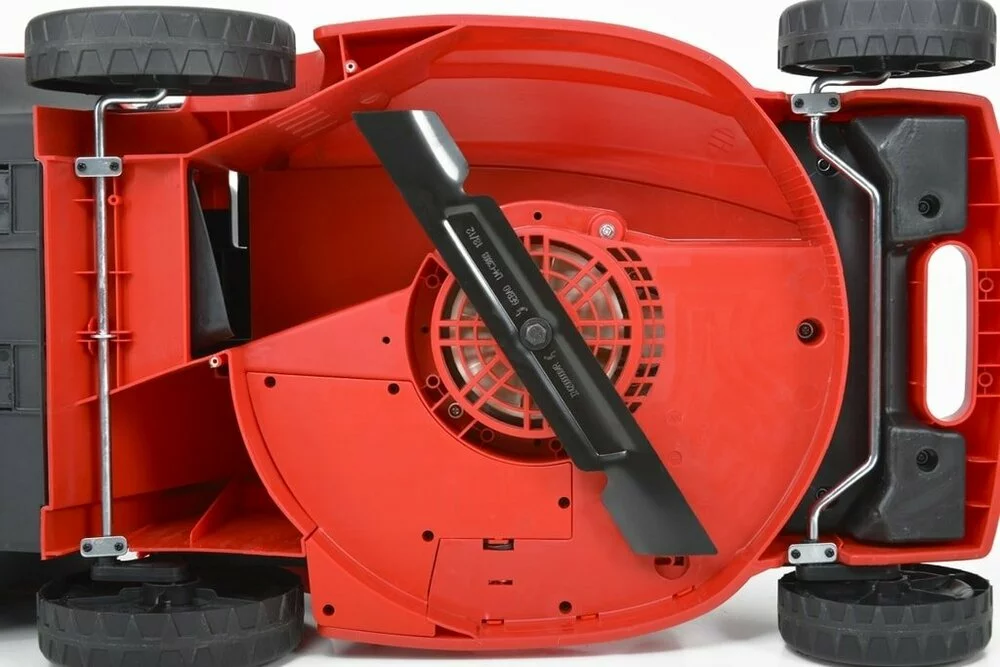 Ширина косіння досить велика - 38 сантиметрів. Тож, дана газонокосарка точно ідеальний варіант для догляду за великими садами.