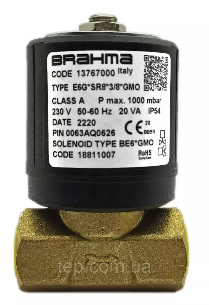 Газовий клапан BRAHMA E6G*SR10*1/2*GMO НЗ, 1/2", 500 мбар