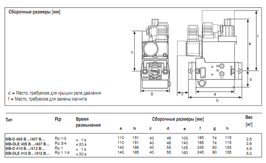 Технические данные газового мультиблока Dungs MB-DLE 412 B01 S50
