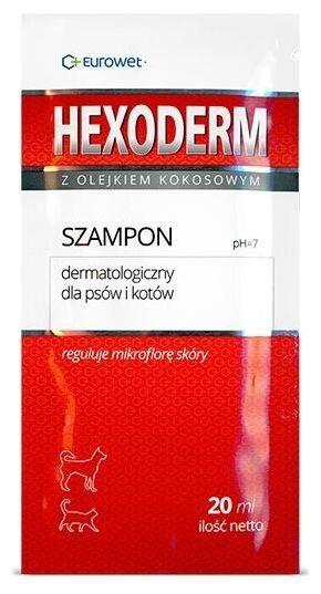 Дерматологічний шампунь для собак і кішок Eurowet Hexoderm Гексодерм з хлоргексидином 3% і кокосовим маслом 20 мл