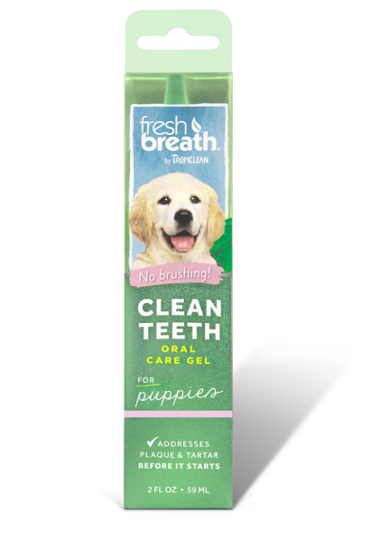 TropiClean Fresh Breath Oral Care Clean Tee Gel для цуценят підтримує здоров’я ротової порожнини вашого цуценя та дарує йому свіже дихання – чистити зуби щіткою не потрібно! Цей смачний гель зі смаком м’яти допомагає захистити від утворення зубного нальоту, водночас освіжаючи дихання цуценяти.