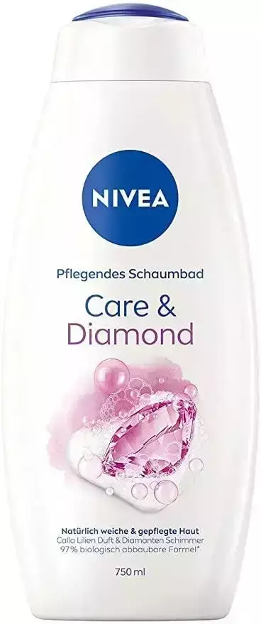 NIVEA Care & Diamond — крем-гель для душу об’ємом 750 мл, створений для ніжного очищення та догляду за шкірою тіла. Має густу кремову текстуру, яка при контакті з водою утворює м’яку піну, що дбайливо очищує шкіру, не пересушуючи її. Після використання шкіра стає гладкою, зволоженою та комфортною на дотик. Засіб підходить для щоденного застосування та перетворює душ на приємний ритуал догляду.