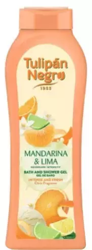 Tulipan Negro «Мандарин‑Лайм» — освіжаючий гель для душу об’ємом 650 мл з яскравим цитрусовим ароматом мандарину та лайму. Легка текстура засобу утворює ніжну піну, яка дбайливо очищує шкіру, видаляючи забруднення та надлишки себуму, не пересушуючи її. Після душу шкіра відчувається чистою, свіжою, гладкою і з приємним цитрусовим ароматом, який дарує заряд енергії та бадьорості на день.
