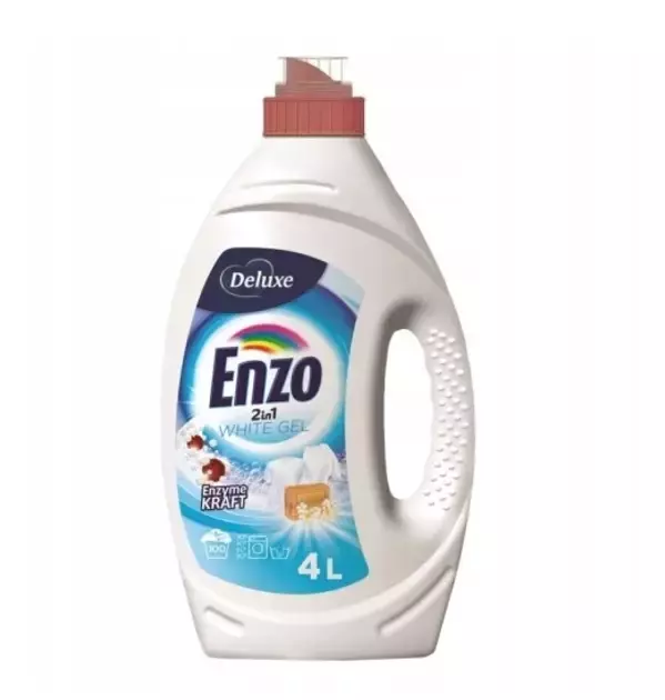 Гель для прання білого та світлого одягу та білизни Deluxe Enzo 4 л. Рекомендований для натуральних тканин та синтетики. Безфосфатний засіб для прання.