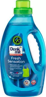 Гель для прання DenkMit Fresh Sensation 4066447161076 1.5 л. Ідеально підходить для спортивного одягу та синтетичних волокон таких як віскоза, еластан, мікроволокно, капрон, поліестер, мікрофібра, поліефір, тканина стрейч, дихаючого спортивного одягу та одягу для відпочинку, зберігає структуру мікро-мембранних волокон.