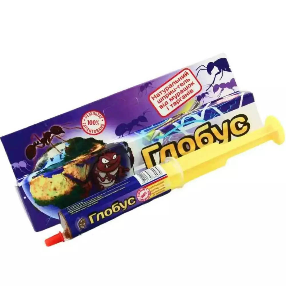 Глобус від тарганів - інсектицидний гель у шприці з дозатором для знищення тарганів та мурах у житлових та нежитлових приміщеннях. У складі приманки використовують високоефективний професійний інсектицид нового покоління, який не викликає резистентності у шкідників.