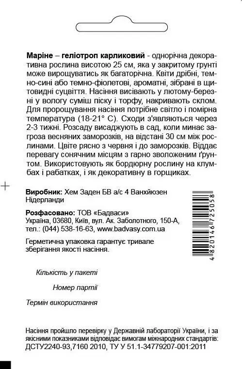 Геліотроп Маріне, темно-синій, 0,1 г, Садиба Центр
