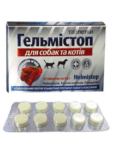 1 таблетка (0,8 г) містить (мг): фенбендазол − 150; пірантелу ембонат − 144; празіквантел − 50; допоміжні речовини − до 0,8 г.