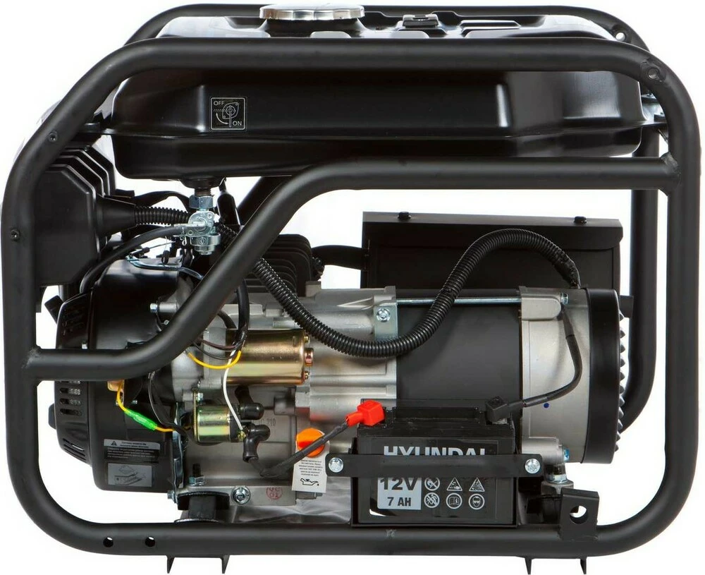 ОПИСФірмовий двигун зі збільшеним моторесурсом:Збільшені розміри впускного та випускного клапанів для швидкого заповнення та вивільнення камери згоряння, які полегшують роботу двигуна, що в свою чергу позитивно впливає на моторесурс;Унікальна конструкція клапанів та головки двигуна унеможливлює випадкове випадіння клапана, що в свою чергу могло б стати причиною руйнування двигуна (в разі випадіння клапана можуть бути пошкоджені такі запчастини як шатун, поршень, блок двигуна, головка блока, та ін.);Зміцнені та збільшені коромисла клапанів також гарантують надійну та довговічну роботу двигуна;Все це забезпечує подовжений моторесурс двигунів даної серії, у тому числі за рахунок зменшення його робочої температури та захищає від перегріву двигуна.Система запуску EASY START - використовується автоматично для полегшеного запуску генератора.Альтернатор - усі генератори Hyundai комплектуються тільки синхронними альтернаторами з мідною обмоткою. Обмотка з міді не перегрівається, витримує більші навантаження у порівнянні з іншими матеріалами, володіє відмінною струмовіддачею. Виготовляються на автоматичній лінії, що унеможливлює присутність дефектів пов’язаних з людським фактором, також застосовано поліпшене укладання проводів з додатковою фіксацією обмоток.AVR (автоматичний регулятор напруги) - виготовлена серійно, встановлені конденсатори підвищеної ємності та герметично заповнена компаундом для захисту від зовнішнього середовища.Фірмова, посилена сталева рама 32 мм - генератори 50-серії надійно захищені міцною металевою рамою з порошковим фарбуванням яка захищає від зовнішніх дій та також унеможливлює вплив вібрації на усі компоненти генератора, у тому числі при максимальному навантаженні. Зменшення вібраційного навантаження гарантується також за рахунок всієї антивібраційної системи, у тому числі за рахунок подвійних амортизаційних подушок.Місткий, сталевий бензобак - резервуар для бензину виготовлений з високоміцного металу. Він вміщує 15 літрів пального, а цього досить для 20 годин генерування електричної енергії при середньому навантаженні.Економна витрата палива - використання інноваційних технологій знизило споживання палива. На годину активності йому потрібно менше 1 л бензину. При цьому не втрачається потужність,а якість роботи зосереджена на збільшенні енергоресурсу.Усі генератори проходять тестування стабільності роботи при температурі від -25°С до 30°С.КомплектаціяБензиновий генератор;Інструкція з експлуатації;Гарантійний талон;Ключ;Дві вилки підключення;Транспортувальний набір не входить до комплекту поставки;Клеми підключення 12 V.