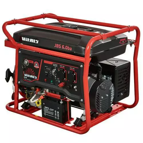 Бензиновий генератор Vitals JBS 6.0ba — це компактний переносний електричний агрегат, призначений для резервного або аварійного живлення побутових споживачів. Виробляє однофазний змінний струм напругою 230 В, частотою 50 Гц. Запуск генератора можливий у ручному або автоматичному режимі.