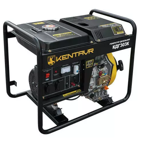 Дизельний генератор Кентавр КДГ-303К – це переносний електричний агрегат, призначений для резервного або аварійного живлення побутових споживачів. Виробляє однофазний змінний струм напругою 230В, частотою 50 Гц.