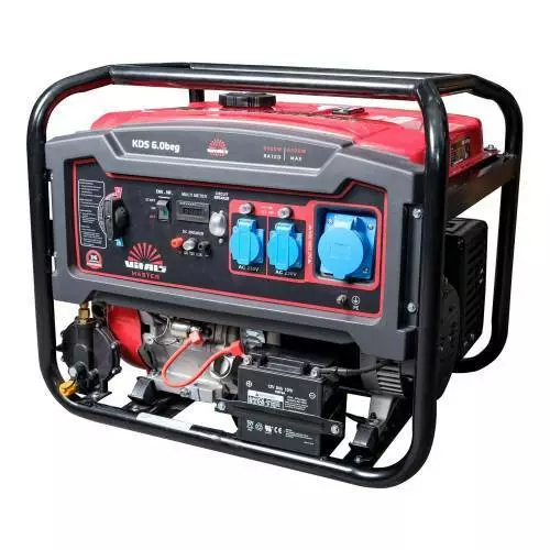 Газ-бензиновий генератор Vitals Master KDS 6.0beg – компактна переносна силова установка, призначена для аварійного або резервного електроживлення побутових споживачів однофазного змінного струму напругою 230 В, частотою 50 Гц.