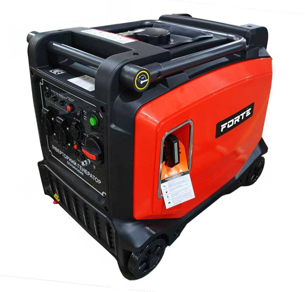 Опис інвенторного генератора Forte FG4500iE Інвенторний генератор FG4500iE стане в нагоді на місцевості, де немає можливості підключення до основної електромережі: в лісі, на риболовлі, будівельних майданчиках. Генератор виробляє 230 В без зайвих частотних перешкод та перепадів напруги. Корпус інверторного генератора Forte FG450iE обладнаний зручною системою індикації основних показників. Агрегат характеризується економним споживанням палива та містким бензобаком. Є надійний і міцний шумозахисний корпус. За рахунок компактності, генератор зручний у транспортуванні. Правильна синусоїда забезпечує безпечну роботу точного обладнання, як комп'ютери, котли, насоси, електроприлади, галогенові лампи. Особливості: Висока якість вихідної напруги; електричний стартер якісний заводський збір; економне споживання палива; низький рівень шуму; компактні розміри; захист від перевантаження двигуна.