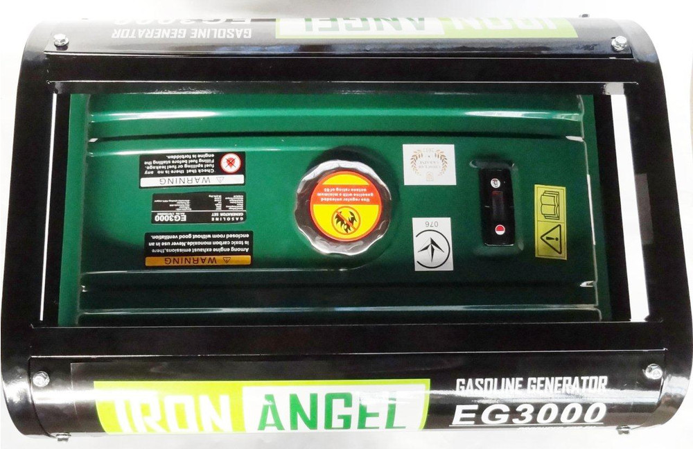Технические характеристики генератора Iron Angel EG 3000: Торговая марка: Iron Angel Фаз - одна Напряжение - 220 Вольт Частота напряжения -50 Гц Максимальная мощность - 2,8 кВт Номинальная мощность - 2,5 кВт Возможность безопасного подключения любого оборудования; Тип генератора: синхронный Уровень шума min/max, дБ (А): 86 Охлаждение двигателя - воздушное Охлаждение генератора - воздушное Двигатель - бензиновый, 4-х тактный, E200 Количество цилиндров двигателя - 1-цилиндровый Топливный бак - 15 литров Время работы на одной заправке - до 8 часов Тип стартера: ручной Расход топлива - 0,550 л/кВт Вес - 45 кг